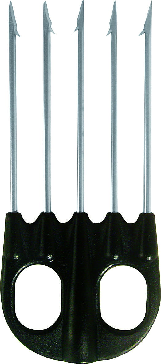 5 zębów ze stali nierdzewnej, w podstawie z nylonu z gwintowanym otworem na strzałę.