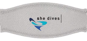 Nakładka na pasek od maski, wykonana z miękkiego neoprenu, w celu zwiększenia komfortu użytkowania maski. Kolor jasny z logiem She Dives. Dostępna również w wersji czarnej z logiem Trilastic.